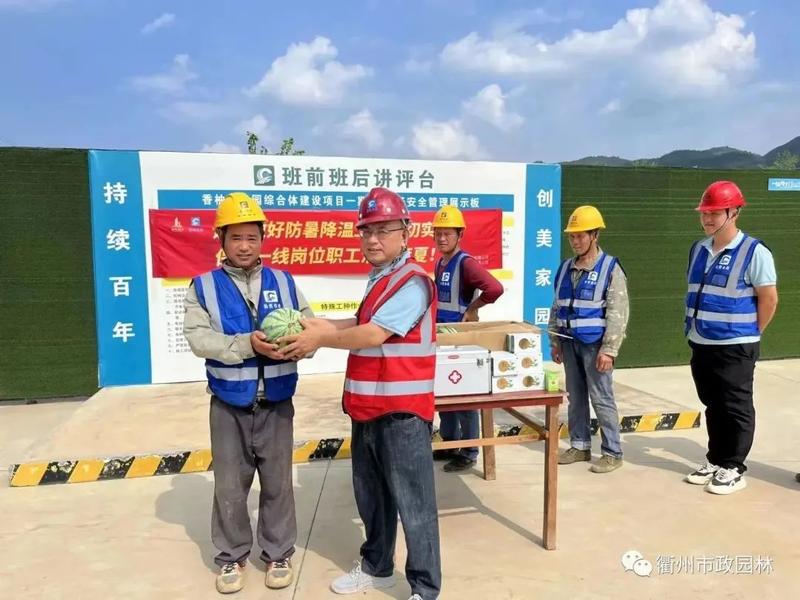 對酷暑天氣還堅守一線的施工人員表示感謝,為他們送上了“高溫慰問大禮包”,禮包內(nèi)含有霍香正氣水、人丹、清涼油、礦泉水、西瓜等防暑降溫物品,并叮囑項目部做到一、落實以“人民為中心”發(fā)展思想,堅持生命至上。二、推進科學(xué)防暑,合理安排工作時間,倡導(dǎo)延時錯峰作業(yè)。三、敬惕熱射病等高溫疾病,建議職工隨身攜帶防暑降溫藥品和飲用水,一旦身體不適,立即吃藥就醫(yī)。四、全力做好高溫防暑工作,高度重視動火作業(yè)和高溫用電安全,加大日常巡檢力度,嚴(yán)防高溫火災(zāi)風(fēng)險。