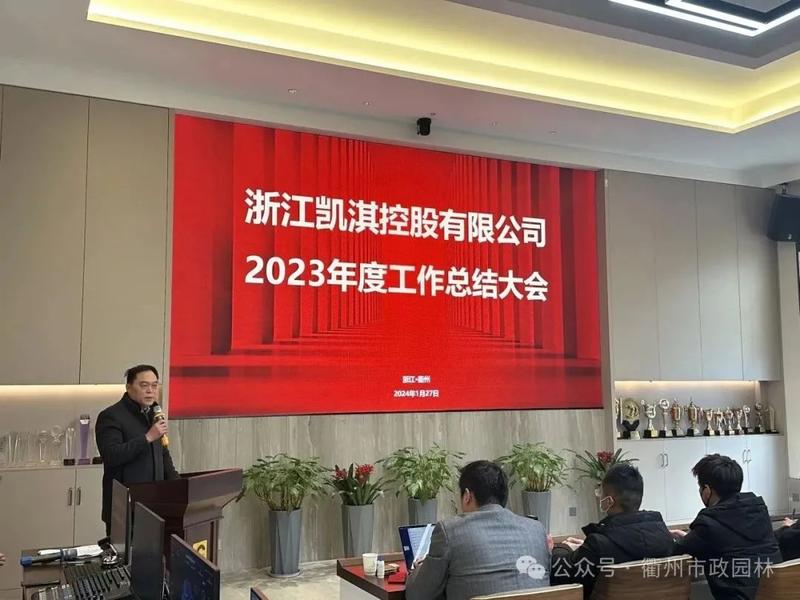 浙江凱淇控股有限公司于2024年1月26日-1月27日順利召開集團(tuán)2023年度工作總結(jié)會(huì)議,會(huì)議所有議程歷時(shí)兩天。凱淇控股旗下朗尊建設(shè)集團(tuán)、市政園林公司、市政建設(shè)開發(fā)公司、園也園林公司、鴻添設(shè)計(jì)公司、森固文旅、和韻衢州、常山億森、尺方間園藝、壹沃科技、忠博貿(mào)易等子公司主要負(fù)責(zé)人及凱淇控股各部門負(fù)責(zé)人、集團(tuán)高管相繼在會(huì)議上作年度工作總結(jié)。最后由凱淇控股鄭榮忠董事長講話。
