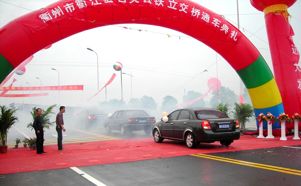 ??????? 5本工程于2007年7月開工建設(shè),是橫跨浙贛鐵路和320國道的一座特大型橋梁,通車儀式的舉行標(biāo)志著連接衢江新城區(qū)和東港開發(fā)區(qū)的交通樞紐百靈北路公鐵立交橋正式開通。