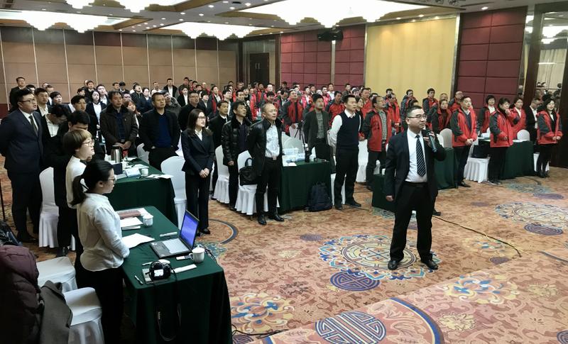 全員在工會(huì)主席蔡延祥的帶領(lǐng)下宣讀企業(yè)文化