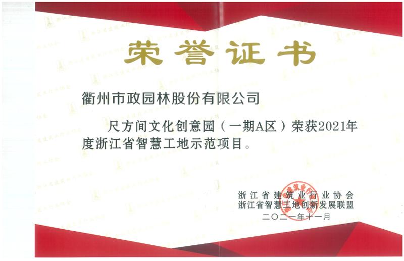 12月3日,2021年度浙江省智慧工地示范項目頒獎儀式在杭州舉行,衢州市政園林股份有限公司承建的尺方間文化創(chuàng)意園(一期A區(qū))項目榮獲2021年度浙江省智慧工地示范項目,成為2021年衢州市本土建筑企業(yè)唯一獲此殊榮企業(yè)。