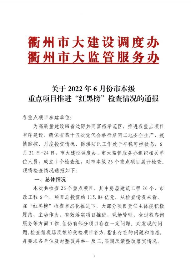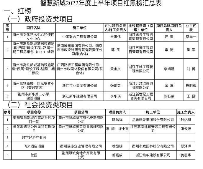 近日,在智慧新城上半年工作總結(jié)大會上,我司承建的衢州市政高鐵城基礎設施配套”四網(wǎng)建設工程--路網(wǎng)二期項目和飛來酒店項目因在2022年度上半年市本級重點項目推進“紅黑榜”檢查評比中獲“紅榜”受到表彰和獎勵。