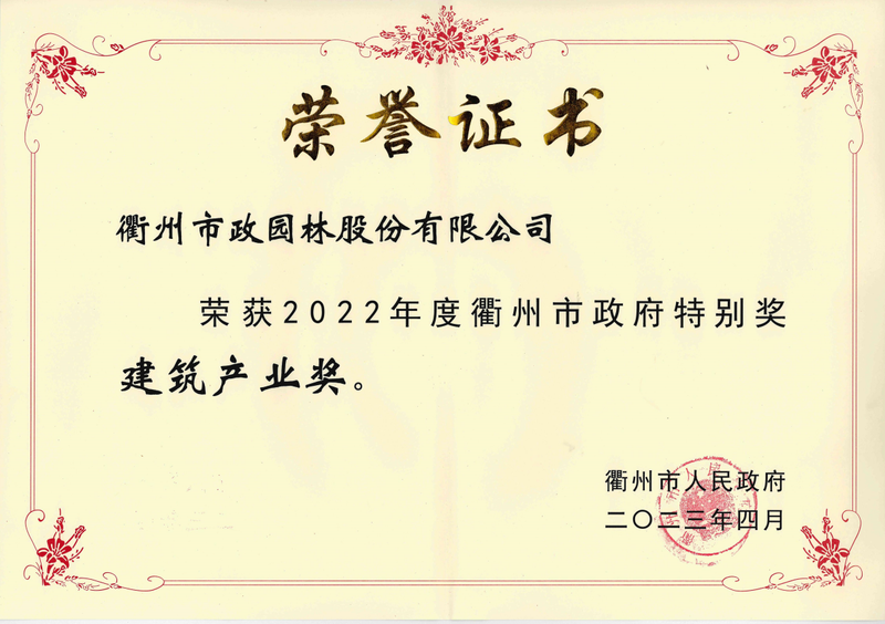 4月2日上午,2023年“工業(yè)強市、產業(yè)興市”表彰大會在衢州市文化藝術中心C座衢州大劇院隆重舉行,本次大會主題為“共建橋頭堡.同心謀共富”。市委書記高屹作主旨演講,市委副書記、市長徐張艷致歡迎詞。會議表彰了2022年度對衢州市經濟社會發(fā)展做出卓越貢獻的組織和個人。我司榮獲“衢州市人民政府建筑產業(yè)獎”。鄭榮忠董事長代表公司接受表彰。