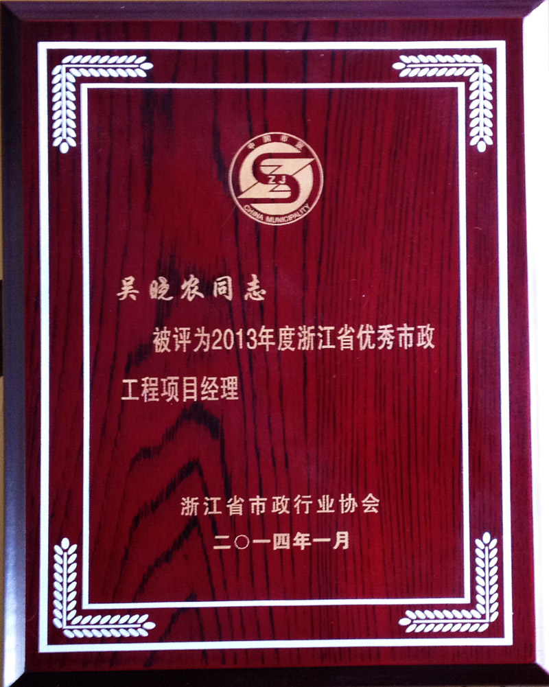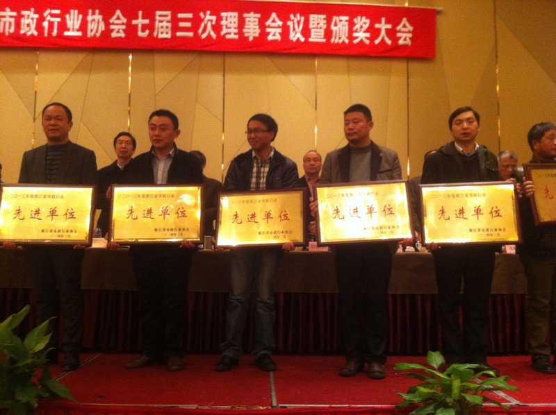 3月5日,浙江省市政行業(yè)協(xié)會七屆三次理事會議暨頒獎大會在杭州舉行,公司副總經理龔時輝、總工程師張松濤參加了會議。會議對2013年度省協(xié)會的各項先進獎項進行了表彰。我公司獲得2013年度浙江省市政行業(yè)誠信單位、2013年度浙江省市政先進單位榮譽,公司項目經理吳曉農獲2013年度浙江省市政行業(yè)優(yōu)秀項目經理榮譽。