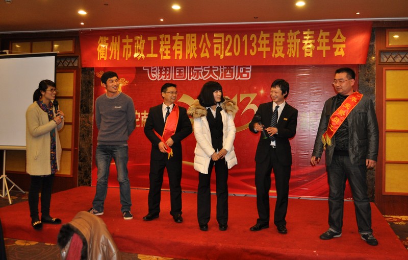 2月7日晚,公司2013迎春年會在飛翔國際大酒店隆重舉行,公司全體員工、應(yīng)邀建造師及佳賓出席。年會在激昂的音樂中拉開帷幕,在主持人熱情洋溢的開場后,首先進(jìn)行的是年度優(yōu)秀員工表彰,為財務(wù)部黃彩霞、行政部薛家美、工程部夏紅成頒發(fā)了公司年度優(yōu)秀員工榮譽(yù)證書和獎品,緊接著為財務(wù)部經(jīng)理鄭林萍頒發(fā)了公司年度優(yōu)秀主管榮譽(yù)證書和獎品。